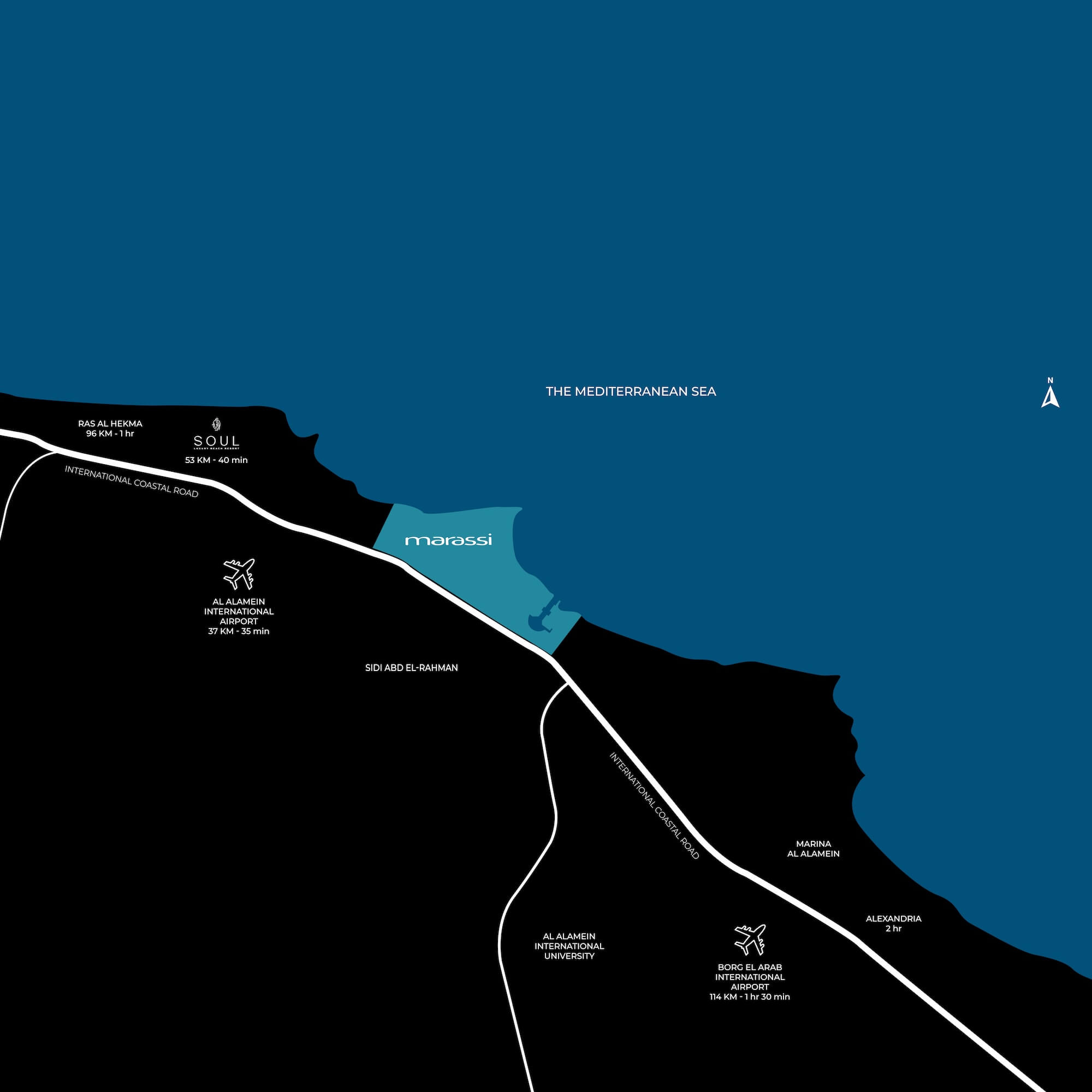 Marassi stands as the most visited destination in Egypt’s North Coast. Offering a revolutionary Sahel experience, it is situated 140 km from Alexandria.
